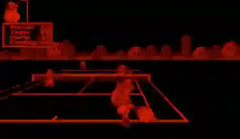 Virtual Boy 游戏《马力欧网球》的模拟器演示画面,实机画面表现与此相比还要差得多