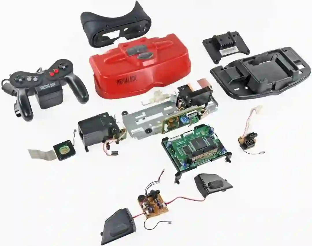 Virtual Boy 拆解图,其主板的面积比树莓派 4B 大一圈
