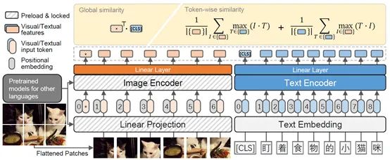 许多研究开始热衷于挖掘 Transformer 在处理多模态任务(如视频 - 文本、图像 - 文本和音频 - 文本)的潜力。CLIP 是其中影响力较大的一个工作, 其将自然语言作为监督信号,来学习更有效的图像表示。CLIP 使用大量文本图像对来联合训练文本编码器和图像编码器。CLIP 的文本编码器是一个标准的 Transformer,具有 mask 的自注意力层;对于图像编码器,CLIP 考虑了两种类型的架构:ResNet 和视觉 Transformer。CLIP 在一个新采集的数据集上进行训练,该数据集包含从互联网上收集的 4 亿对图像 - 文本对。CLIP 展示了惊人的零样本分类性能,在 ImageNet-1K 数据集上实现了 76.2% top-1 精度,而无需使用任何 ImageNet 训练标签。华为诺亚的悟空(英文名:FILIP)模型使用双塔架构构建图文表征,取得了更好的效果,如图 5 所示。总之,基于 transformer 的多模态模型在统一各种模态的数据和任务方面显示出了其架构优势,这表明了 transformer 具备构建一个能够处理大量应用的通用智能代理的潜力。
