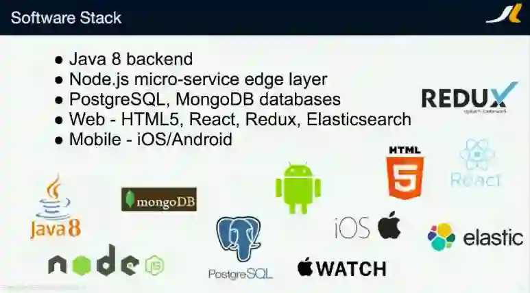 我们的核心处理服务都是用Java编写的。我们在我们的微服务边缘层中使用节点JS。而节点JS实际上也开始进一步向下进入处理服务层。我们使用许多不同类型的数据库。我们的主要实时数据库是Post Press。而我们使用Mongo作为我们的API服务的后端。