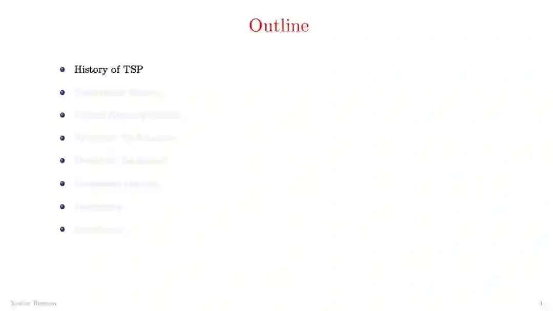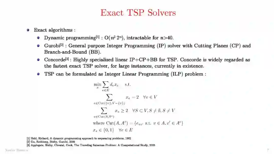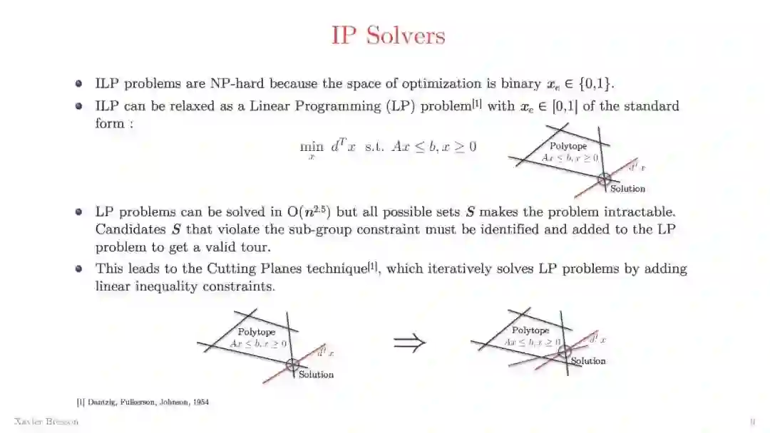 旅行商问题(TSP)是最受欢迎和研究最多的组合问题,始于1951年的冯·诺依曼。它推动了几种优化技术的发现,如切割平面、分支定界、局部搜索、拉格朗日松弛和模拟退火。