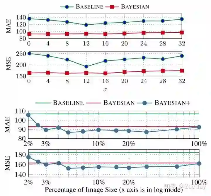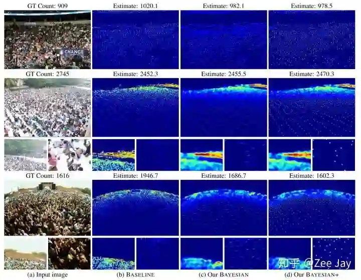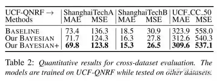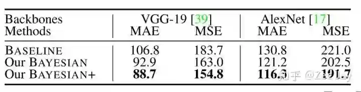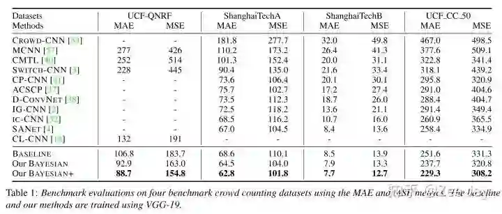 baseline就是用VGG直接训MSE进行训练,Bayesian表示不考虑背景的bayesian loss,Bayesian+表示考虑了背景的loss。