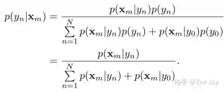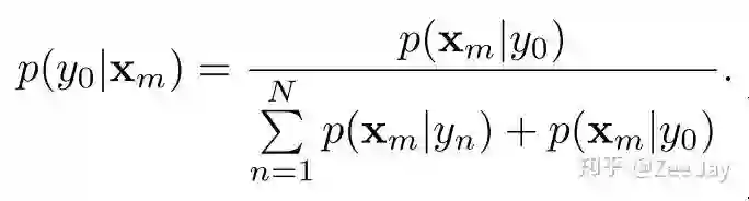 所以后验概率的分母多了背景存在于Xm处的概率,p(Xm|y0), 然后统一p(Xm|yn)和p(Xm|y0)都为1/(N+1),即把背景也当作一个人,那么后验概率如下所示: