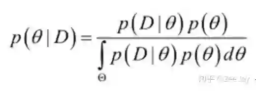 基于这组观测值,我们可以利用贝叶斯定理,反推这样一组观测值是θ取某个值所导致的概率的大小,以下就是贝叶斯定理的公式了: