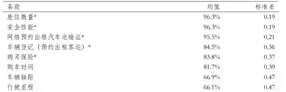 (4)网约车创造了大量新型就业岗位,所以在失业率较高的城市,发展网约车的需求较大,放宽网约车准入门槛的可能性较大。结果显示,失业率较高的城市对网约车车辆也提出了较高的要求,但是却不影响驾驶员的进入门槛。
