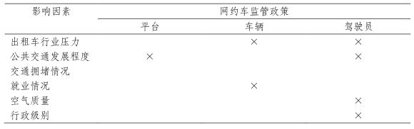 各地网约车监管政策差别很大,那么什么因素会影响网约车的包容度?综合已有研究,我们认为出租车行业的抗争压力、公共交通发展状况、交通拥堵状况、失业率、空气污染、行政级别等是值得关注的关键因素。我们系统收集了这些方面的数据,并利用回归模型进行定量分析,得出如下结论。