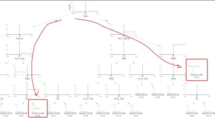 模型结果1:模型输出(结果可视化展现,自动剪掉冗余分支,只截取贡献高的枝干呈现)