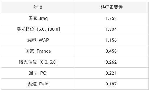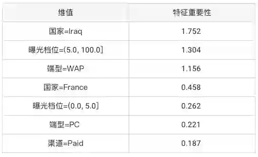 APP : 1.218 美国 : 0.936 付费 : 0.907 法国 : 0.863 伊拉克 : 0.035 (5.0, 100.0]: 0.033 土耳其 : 0.000