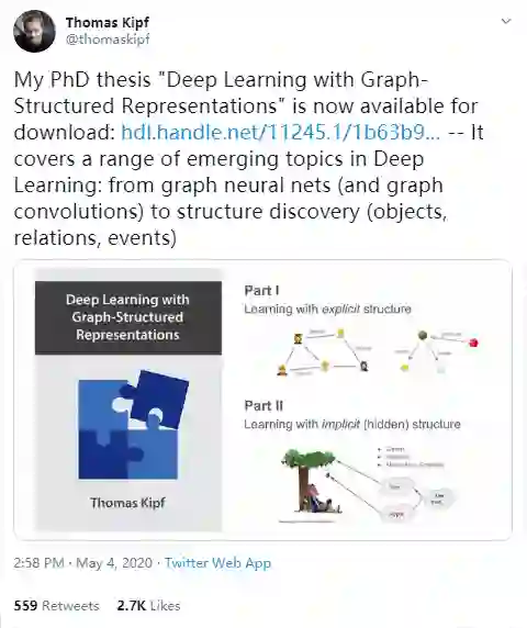 GCN 作者 Thomas Kipf 宣布公开其博士论文(178 页)。