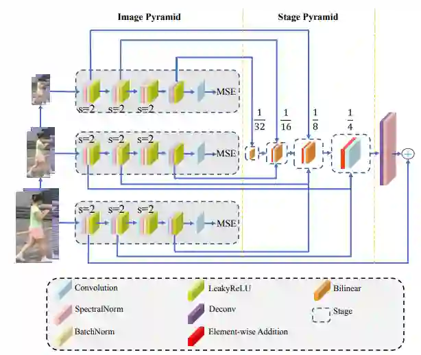 由于跨数据集的可迁移性在 re-ID 域中至关重要,因此作者还通过构建新颖的多级网络体系结构进行半黑盒式攻击,该体系结构将不同级别的特征金字塔化,以提取对抗性扰动的一般和可迁移特征。该体系可以通过使用可微分的采样来控制待攻击像素的数量。为了保证攻击的不显眼性,研究者还提出了一种新的感知损失,以实现更好的视觉质量。