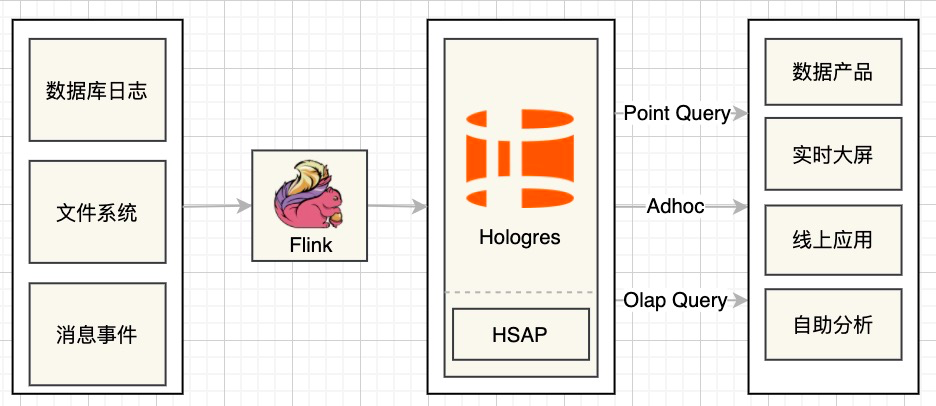 流批一体:小型维表的加速不再通过异构数据导入的方式加载,而是直接在Hologres中创建外表,通过外表与内表的联邦查询(join)能力,直接为线上OLAP应用场景提供服务。