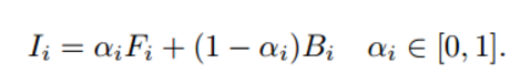 其中 Ii 是像素块 i 的 RGB 色彩,已知前景色彩 Fi,背景色彩 Bi,未知蒙版估计(matte estimation)αi。在这个方程式中,抠图问题形式化为两种颜色的线性组合,因此大多数现存的算法很大一部分都是将其近似求解色彩的问题。