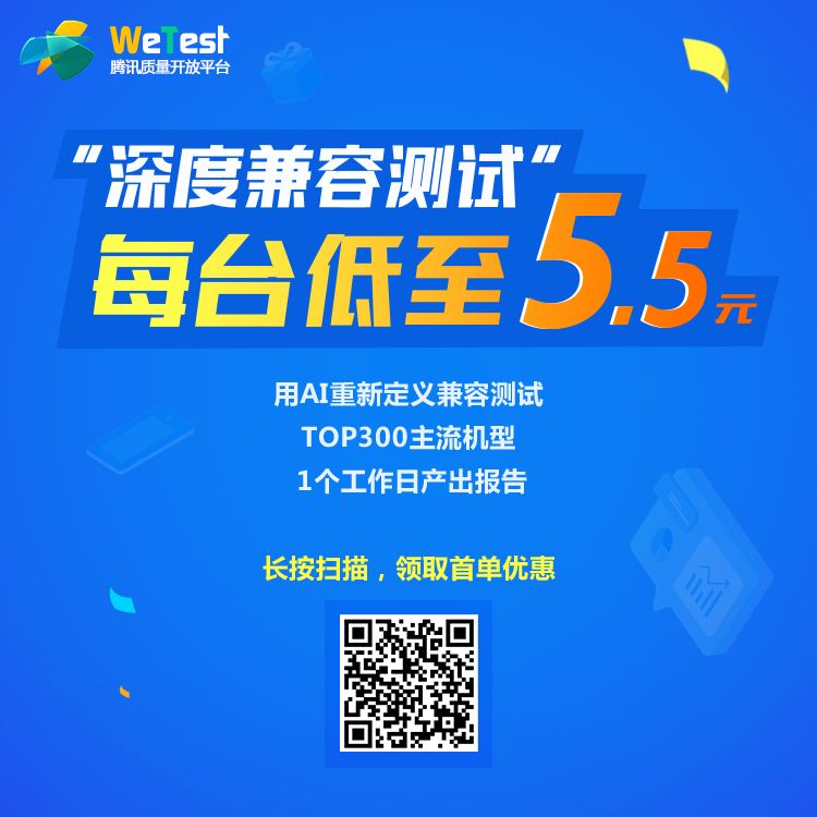 目前,腾讯WeTest深度兼容测试已经正式上线,针对个人用户、企业用户提供月包、季包服务优惠,优惠套餐平均每台机型低至5.5元,以低价格、高品质来进一步解决开发者面临的困境,推动整个行业发展。