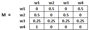 为了获得用户从一个页面跳转到另一个页面的概率,我们将创建一个正方形矩阵M,它有n行和n列,其中n是网页的数量。
