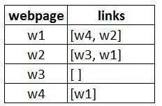假设我们有4个网页——w1,w2,w3,w4。这些页面包含指向彼此的链接。有些页面可能没有链接,这些页面被称为悬空页面。