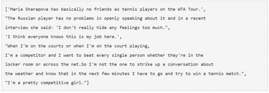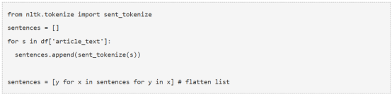 下一步就是把文章的文本内容分割成单个的句子。我们将使用nltk库中的sent_tokenize( )函数来实现。