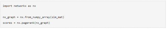 在进行下一步之前,我们先将相似性矩阵sim_mat转换为图结构。这个图的节点为句子,边用句子之间的相似性分数表示。在这个图上,我们将应用PageRank算法来得到句子排名。