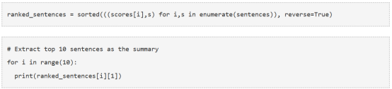 最后,根据排名提取前N个句子,就可以用于生成摘要了。
