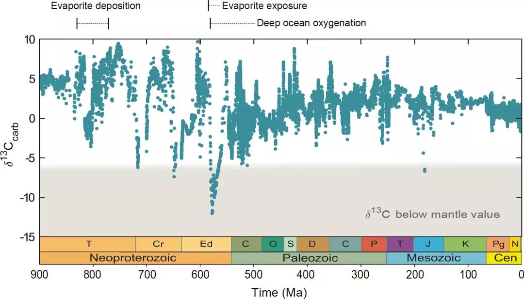 距今9亿年来海水碳同位素(δ13C)记录