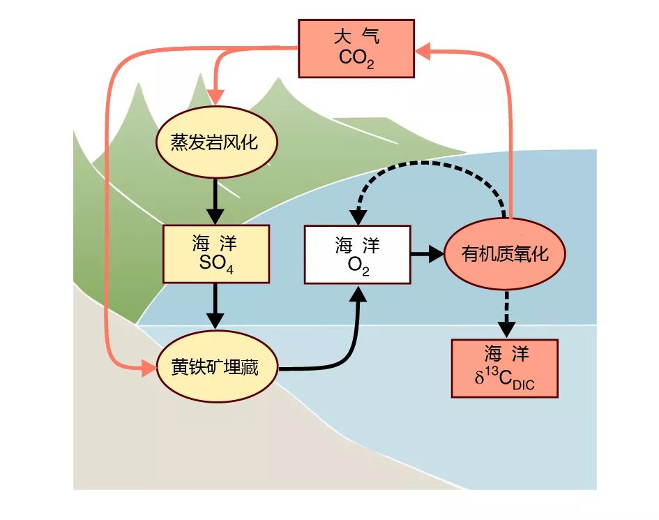 蒸发岩风化与海洋有机碳库氧化的正反馈模型图