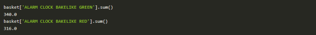 您可能想要看看有多大的机会可以使用一种产品的受欢迎程度来推动另一种产品的销售。例如,我们可以看到,我们销售340个绿色闹钟,但只有316个红色闹钟,所以也许我们可以通过科学的方法来推动更多的红色闹钟销售。