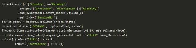 接下来我将演示一个使用此库来分析相对较大的在线零售数据集的示例,并尝试查找有趣的购买组合。在本文结尾处,我希望你能掌握将其应用于你自己的数据集的基本方法。