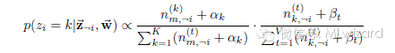 o 实际应用中会设置最大迭代次数。每一次计算p(zi|z-i,d,w)的公式称为吉布斯迭代更新规则.