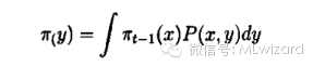 最后一个等式利用了转移矩阵每行元素的和为1离散状态的马氏链的基本思想可以推广到连续情形,设其转移核为P(x,y)