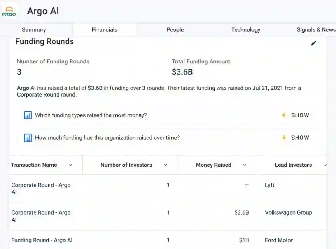 2021 年 7 月,Argo 又接受了 Lyft 数额未公布的投资,该公司最终的融资金额定格在 36 亿美元。