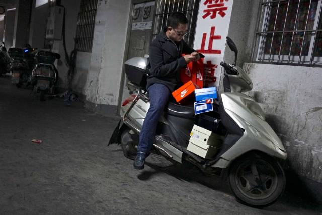 高仿鞋则是在莆田本地发展壮大的产业。表面上看,安福和大部分住宅小区没什么不同,但住在防盗门背后的却有很多是仿鞋卖家。白天的安福很冷清,商铺大门紧闭,晚上八九点钟,灯光逐渐亮起,它开始苏醒,交易持续到后半夜。面包车、摩托车、电动车,白天忙着接单的卖家们赶来提货,当场验货后交给快递点。走进快递区,几十家门店现场收发,满耳都是撕扯胶带的响声。