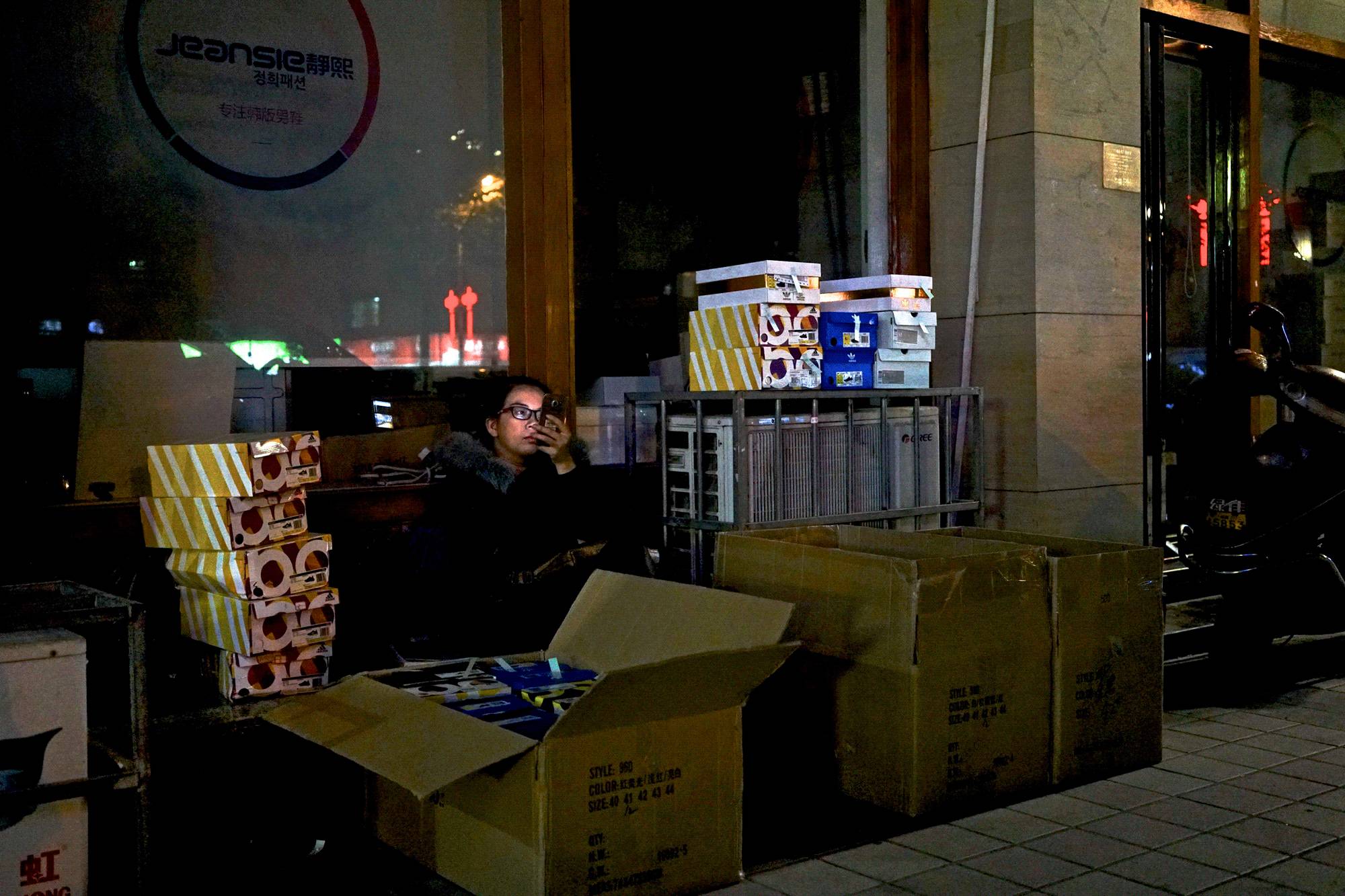 晚上的中国安福市场是高仿鞋的狂热交易市场