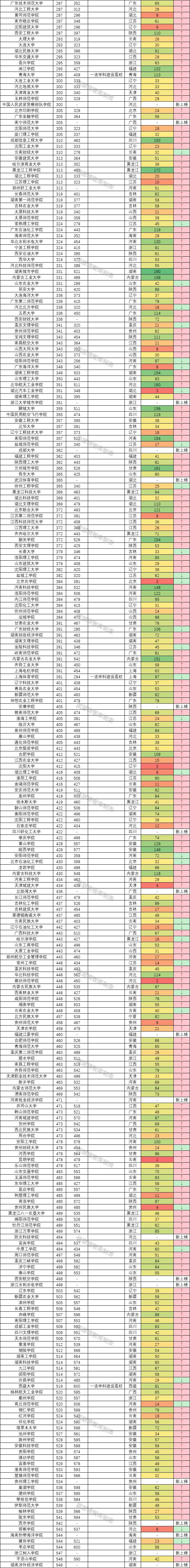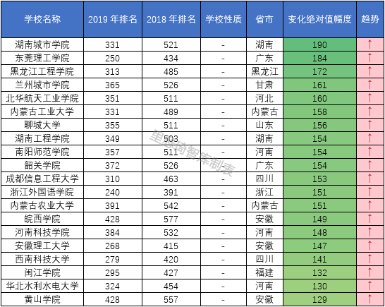 其次再看第二类:排名变化浮动较大的高校。今年榜单中排名变化幅度较大的学校有很多,尤其是200名之后的高校这种现象非常普遍。