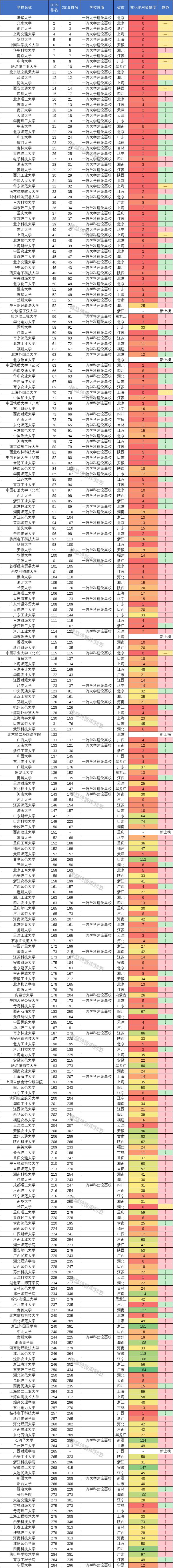 通过以上学校类型的划分我们可以看出今年的软科中国最好大学排名多数学校是进步的,退步的学校占少数。