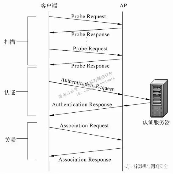 在介绍如何查看客户端连接的AP之前,首先介绍无线接入过程,如图8所示。