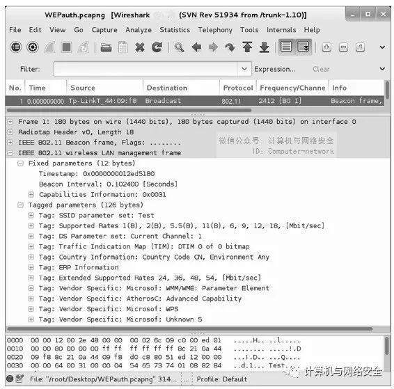 目前,AP最常用的两种加密方式就是WEP和WPA。这里通过Wireshark来判断AP使用了哪种加密方式。