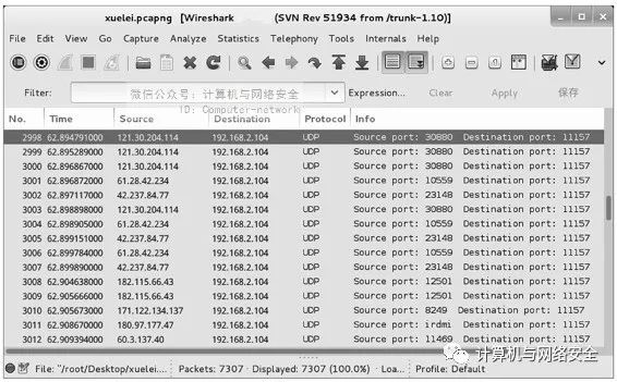 (5)当客户端使用迅雷正常下载视频时,返回到Wireshark捕获包界面,将看到有大量UDP协议的包,如图14所示。