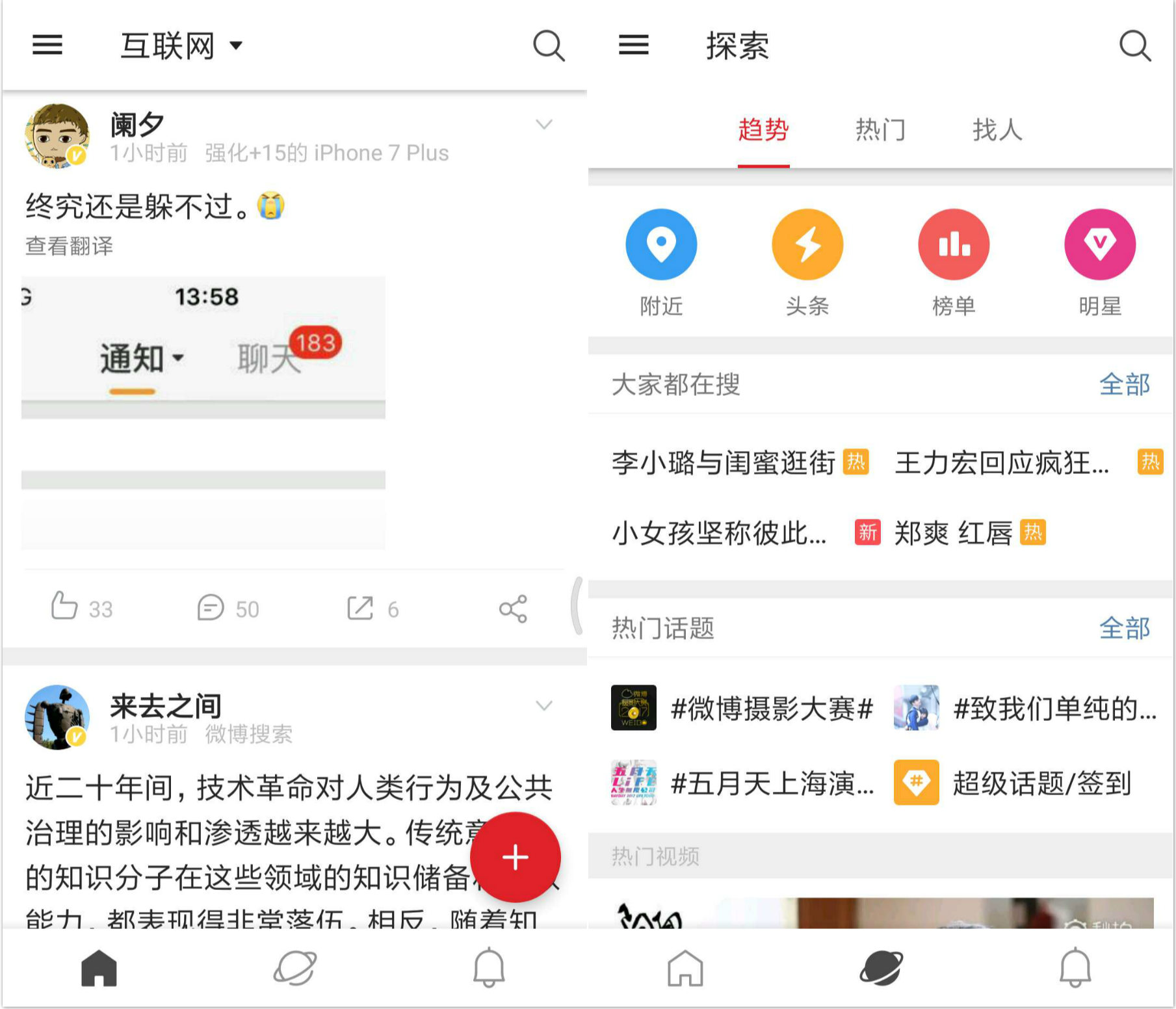 重点说下微博国际版和Weico。前者毫无疑问是亲儿子,今年3月新浪官方宣布上线微博国际版,一时间各大产品测评网站纷纷力推此产品。体积只有原版一半,该有的功能都有,只有开屏广告。时间线正常,也不会平白无故关注一堆营销号。这个体验确实是现阶段所有微博App最优。