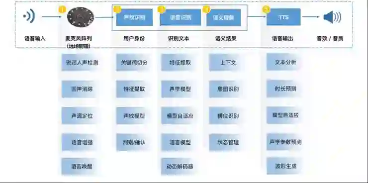 麦克风采集到声音之后,就需要对这些声音进行处理,对多麦克风采集到的声音信号进行处理,得到清晰的人声以便进一步识别。这里涉及的技术包括语音端点检测、回声消除、声源定位和去混响、语音增强等。另外,对于通常处于待机状态的智能音箱,通常都会配备语音唤醒功能。为了保证用户体验,语音唤醒必须要足够灵敏和快速地做出响应,同时尽量减少非唤醒语音误触发引起的误唤醒。