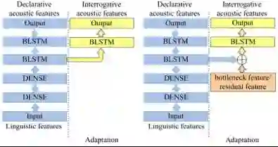 腾讯 AI Lab 在 ICASSP 2018 上也有一篇关于风格适应的论文《基于特征的说话风格合成适应(Feature Based Adaptation For Speaking Style Synthesis)》。这项研究对传统的基于模型的风格适应(如下左图)进行了改进,提出了基于特征的说话风格适应(如下右图)。实验结果证明了这种方法的有效性,并且表明这种方法能在保证合成语音质量的同时提升其疑问语气风格的表现力。