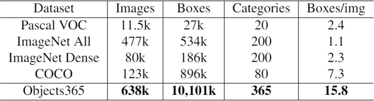此外,在数据方面,旷视还在今年年初联合北京智源人工智能研究院发布了一个包含70万张图片的数据集Objects365,其中包含了365中常见的物体以及超过一千万个标注框,是目前世界上最大的物体检测数据集,相较此前最大的COCO数据集,是其十倍之多。