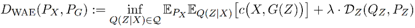 根据定理 1,解这个问题是在 encoder Q(Z|X) 上做优化,而不是在 X 和 Y 的联合分布上。在实践中,为了找到数值解,WAE 放宽了对 Qz 的约束,训练目标为: