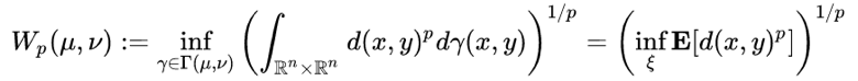 而实际上,以上结论成立的前提是 1-wasserstein distance,p-wasserstein distance 的定义如下: