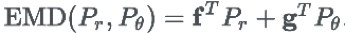 由于存在约束条件,可以得到 f(xi) + g(xj) ≤ Dij。由于当 i = j 时,Dij =0,则 f(xi)≤-g(xj),因为两个分布一直非负,所以要最大化,就要最大化,这个求和式在 f = -g 时取到最大值 0。