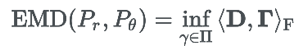 在这个联合分布下可以求得所有 x 与 y 距离的期望,存在某个联合分布使这个期望最小,这个期望的下确界(infimum)就是 Pr、Pg 的 Wasserstein 距离。