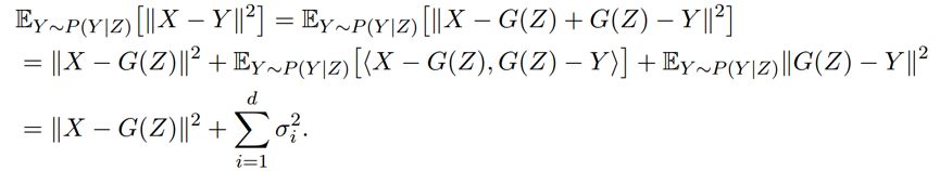 其中第二项,Y~P(Y|Z) 中,则 Y 与这个 Y 均值 G(Z) 的差异对 P(Y|Z) 计算期望,肯定为 0,第三项则刚好是 Y 的方差。所以用这种方法计算出来的距离比 Wasserstein 距离多一个方差。