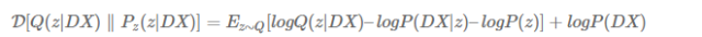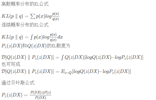 现在的问题就变成了,我们可以根据DX计算出Q(z|DX)来让他尽量与理想的Pz(z|DX)尽量的趋同,这就要引入更加高深的功夫了——相对熵,也叫KL散度(Kullback-Leibler divergence,用 D表示)。