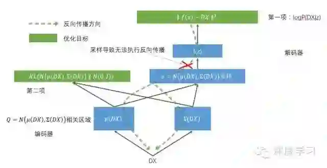 由于这个网络传递结构的一个环节是随机采样,导致无法反向传播,所以聪明的前辈又将这个结构优化成了这样: