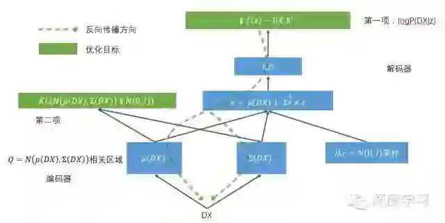 第二项是Q(z|X)与N(0, I)的相对熵,X->z构成了编码器部分。
