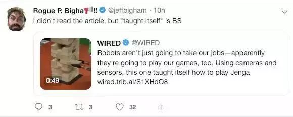 一台机器人不可能自己学习如何玩层层叠游戏。首先承认,我没读推文链接中的文章,但毫无疑问的是,有一帮家伙打算让一台机器人学会玩层层叠。人类,付出了巨大的努力,构建起一套复杂的系统,使得机器人能够利用某种数据进行自主学习。这些数据一般来自人类的亲身试验,或者由人类通过适当设置进行强化,从而确保机器人能够在“自己玩”的过程中掌握其中的诀窍。换言之,这一切,都需要人类的参与。