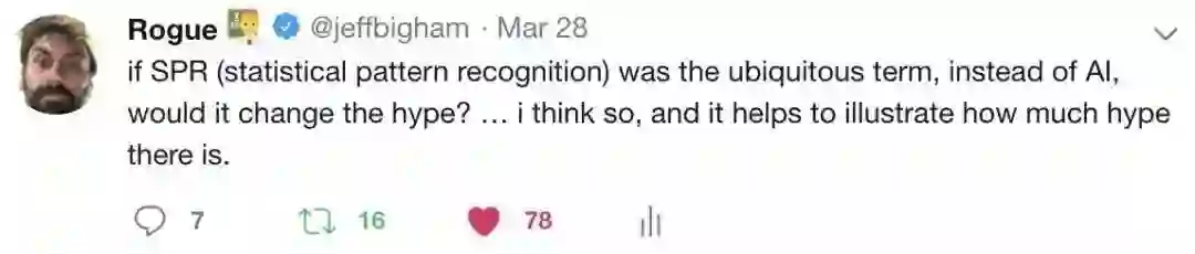 几天之前,我曾在推特上提到,如果我们不再使用“AI”这种表述,而是使用更具体更准确的“统计模式识别”这一术语,那么炒作问题是否能够随之消散。